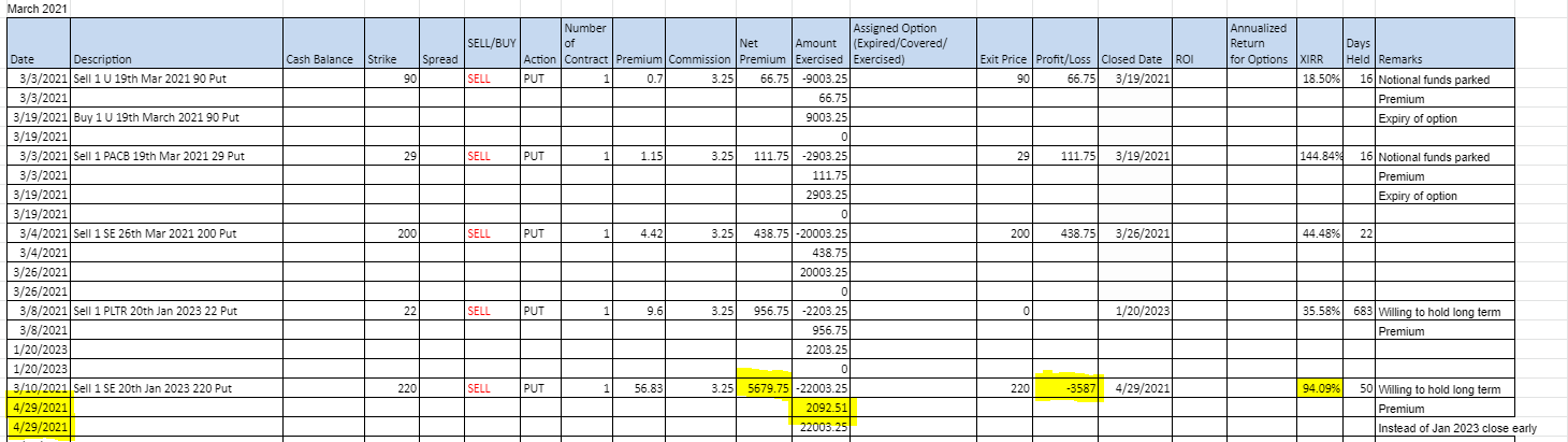In the month of April, I manage to spend some time on options trades. Our helper “balik kampung” means she decided to retire and went back to her home town. She pales in comparison to my 1st helper. You can read about her story here. This helper is a spendthrift whereas my first helper is like me who is a penny pincher. My first helper came from a very humble background due to her family situation but she worked her way to achieve financial freedom despite all difficulties. The present helper who left came from better family background and she inherited some land from her late father, her husband sells bricks as a business. Maybe that’s why she can spend money freely.