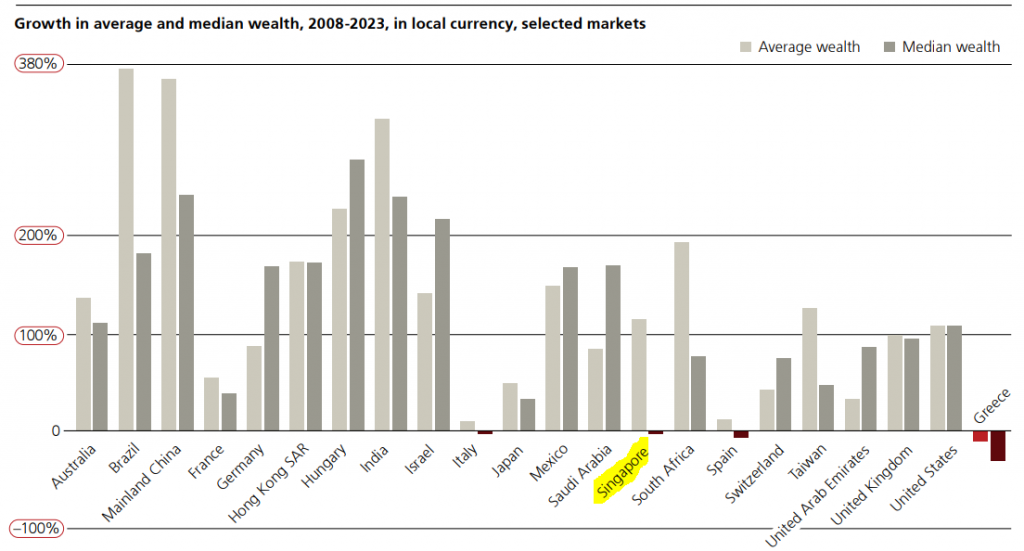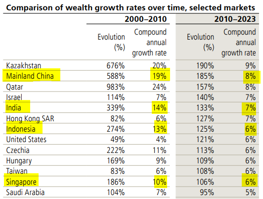Wealth growth is slowing down, it has fallen from an average of 7% between 2000 and 2010 to 4.5% between 2010 and 2023. One-third has been chopped off. Singapore was at 10% between 2000-2010 and it dropped to 7% between 2010-2023. I have not seen much improvement in our industries here in Singapore.