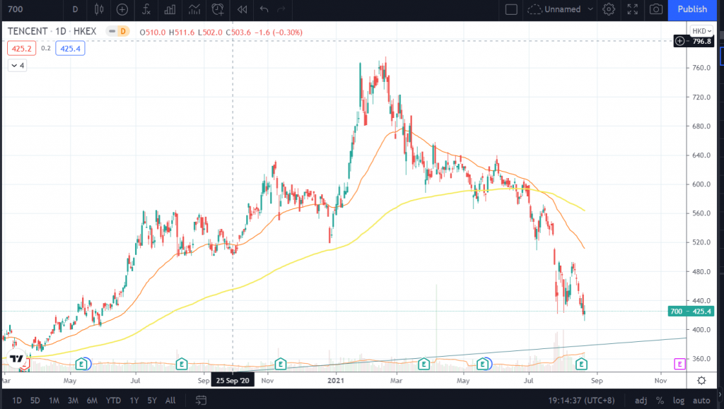 In my previous post, I have mentioned why China’s technology stocks took a beating. China announced that it will go through 5 years of regulation on technology companies which include turning education companies into non-profit organizations. Education companies contribute a lot of revenue to Tencent’s online advertisement platforms. If they become non-profit organizations and advertisements on tuition are banned, there will be lesser revenue for Tencent.